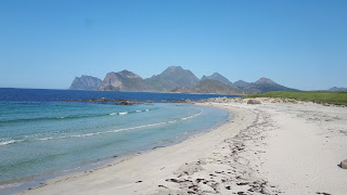 Nous baroudons avec Mamie pendant 11 jours dans la partie sud des Lofoten jusqu'à Svolvaer. Ces 11 jours sont MERVEILLEUX, on en prend plein la vue ! Et le temps favorise le voyage puisque le ciel est bleu ! La magie opère à chaque virage! Et dans l'assiette, c'est pareil, on continue de pêcher du poisson ! Bref, on se régale le ventre, on se régale les yeux ...